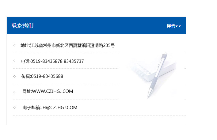 傳真:0519-83435688    郵編:213135    網址:WWW.czjhgj_com.bjjstg.com    電子郵箱:JH@czjhgj_com.bjjstg.com
